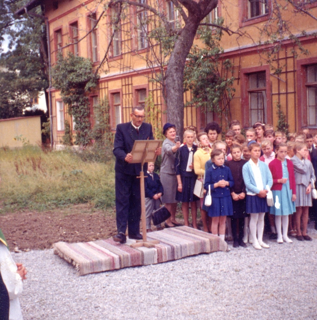 Bild von 1968 mit der neuen Turnhalle und dem damals noch einstöckigem Neubau (inkl. Keller)