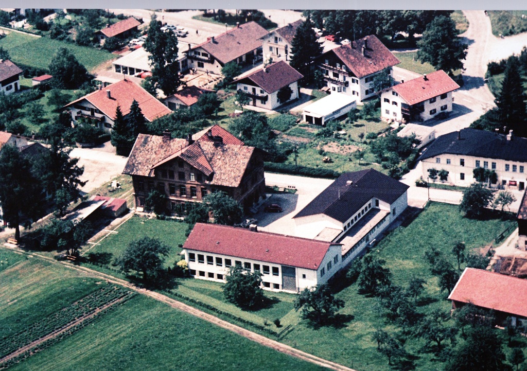 Bild von 1968 mit der neuen Turnhalle und dem damals noch einstöckigem Neubau (inkl. Keller)