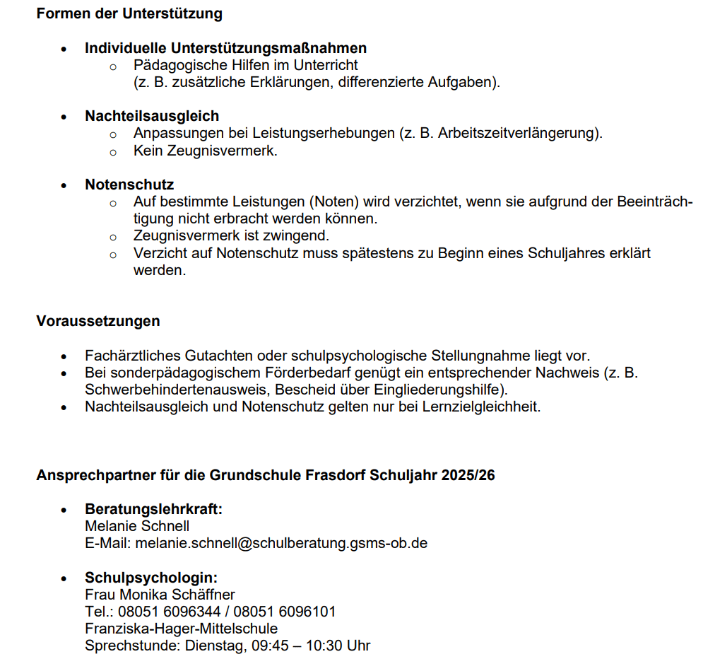 Zuständigkeit und Erreichbarkeit der Schulpsychologin/Beratungslehrkraft für die